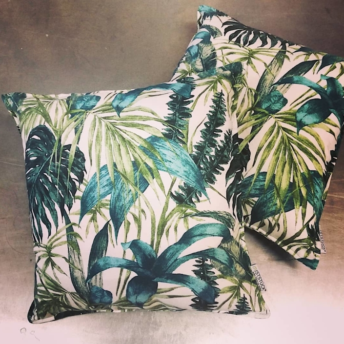 2 Pölster mit tropischem Muster, 100% Baumwolle